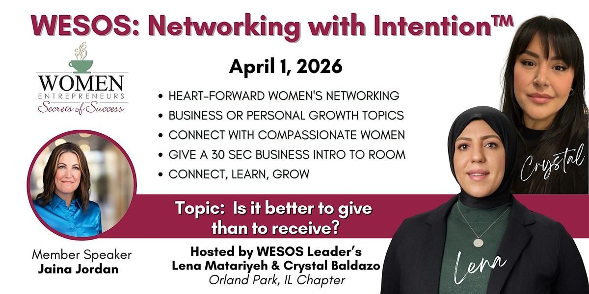 Join us to grow your personal and professional skills, network, and grow authentic relationships! Simply reserve your spot for this event with the appropriate ticket type as either a paid WESOS Network Member or as a Non-Member (Guest).