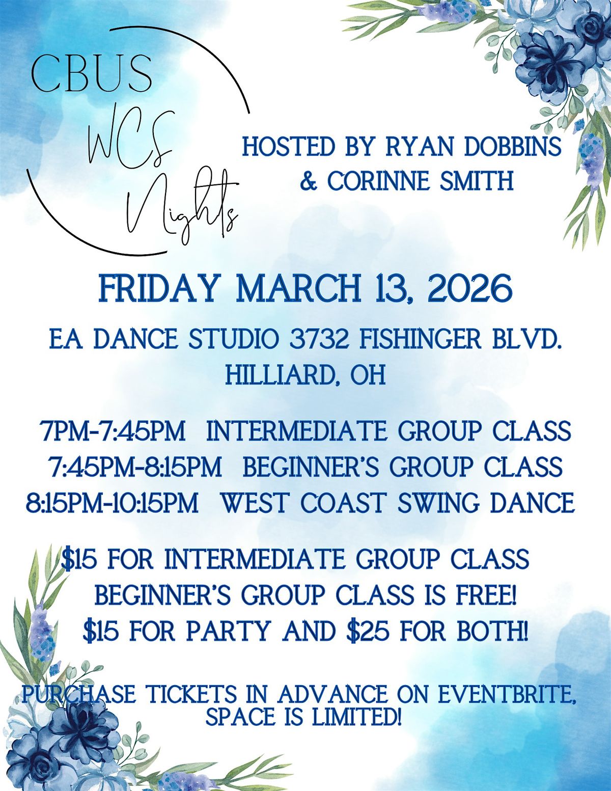Whether you're an experienced West Coast Swing dancer or a beginner, you're welcome to join us for this evening full of dancing. Attire is casual/dressy casual and no partner is required to attend this event!