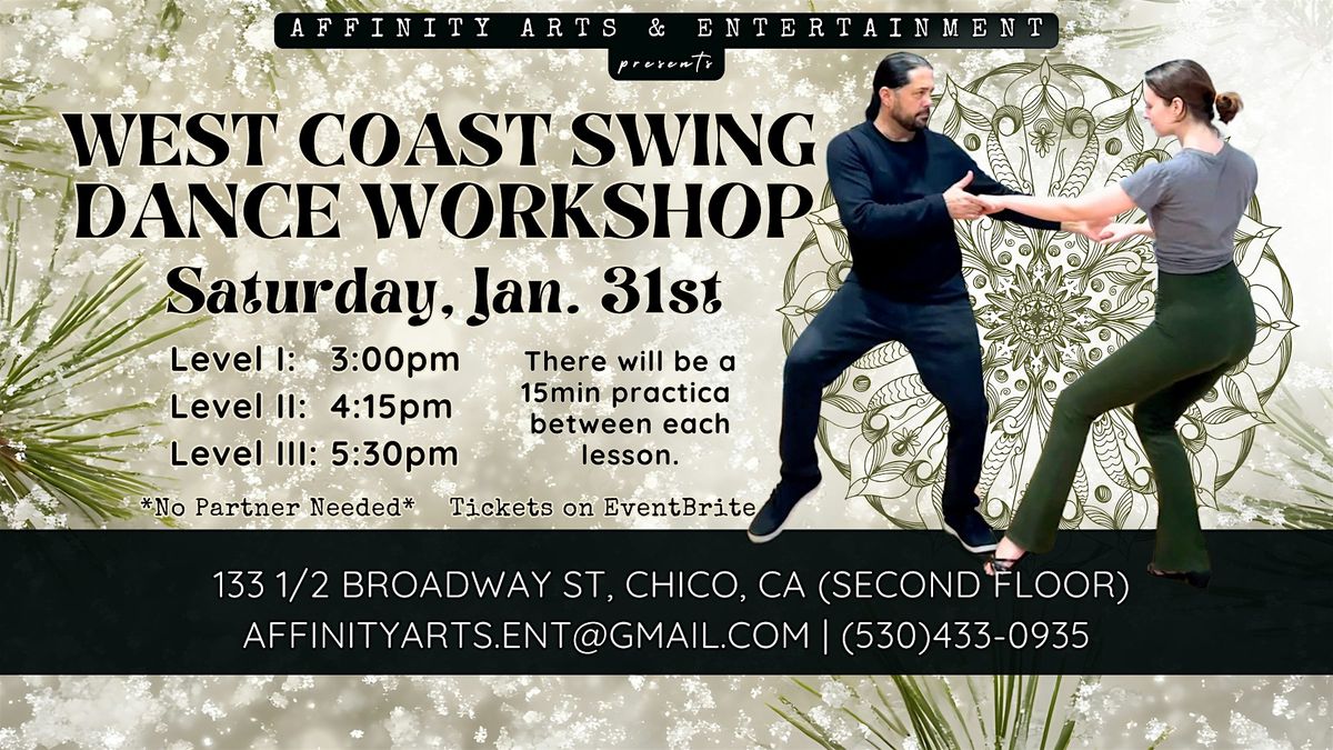 West Coast Swing is characterized by a very distinct "up beat" in the music. If you've been told you have "no rhythm" or “two left feet”, West Coast Swing might just be the dance to change your fate! By the end of this workshop, you will be dancing, moving, and grooving with a partner. You don't need ANY previous experience for our Intro class and you DON’T need a partner to join. Hope to see you there!