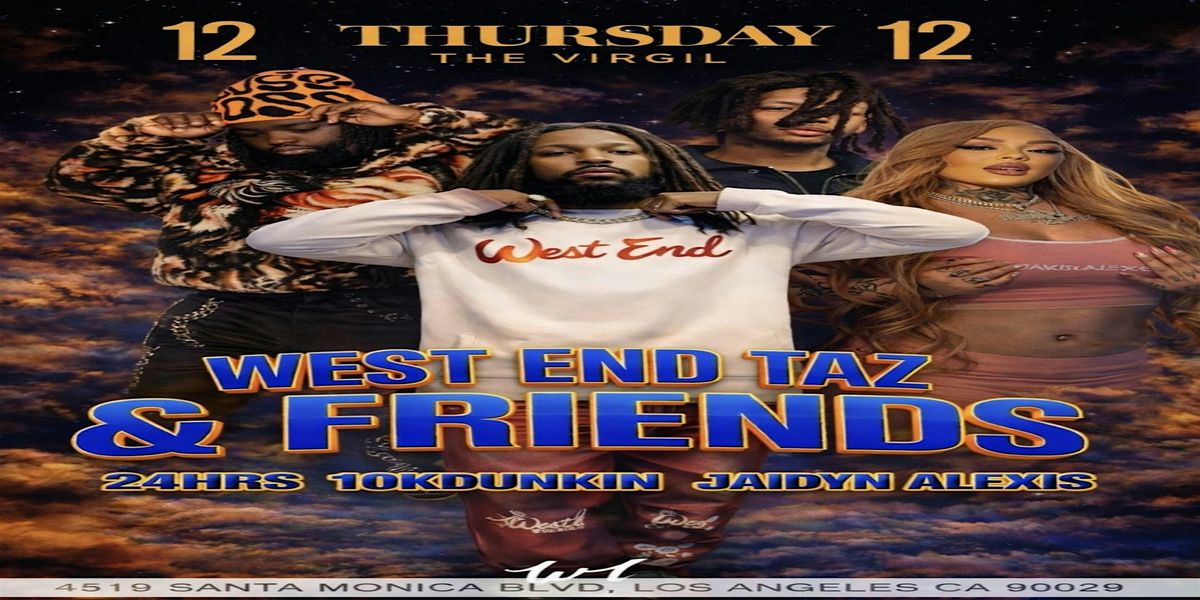 MARCH 12TH | @THEVIRGILBAR LOS ANGELES | “WEST END TAZ & FRIENDS” @24HRS X @10KDUNKIN X @OFFICIALJAIDYNALEXXIS & MORE | 8PM - 2AM FREE SHOW