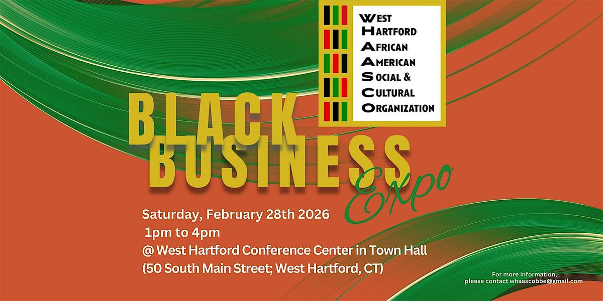 Welcome to the West Hartford Black Business Expo presented by WHAASCO! Join us at the Town Hall Auditorium on February 28, 2026 at 1:00 PM for a celebration of black-owned businesses in our community. Come discover unique products, services, and talents while supporting local entrepreneurs. Don't miss this opportunity to connect, network, and shop from a diverse array of vendors. See you there!