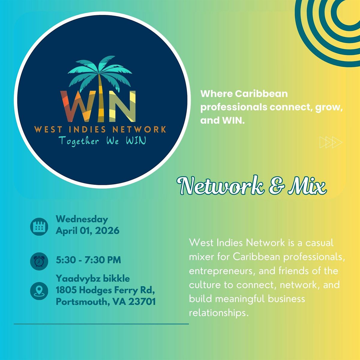 West Indies Network is a casual mixer for Caribbean professionals, entrepreneurs, and friends of the culture to connect, network, and build