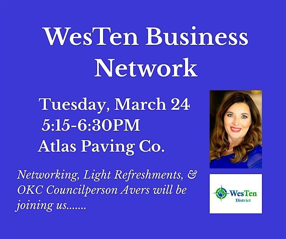 WesTen business owners,you are cordially invited to a WesTen Business Networking Event—a dedicated space to build relationships with your business neighbors and engage directly with OKC Councilperson Avers.