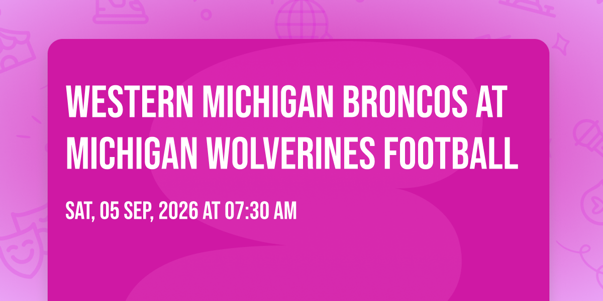 📍 Location: 42.2657, -83.7495🎉 Welcome to Western Michigan Broncos at Michigan Wolverines Football, where dreams come alive and possibilities are endless! 🏛️ Join us at Michigan Stadium in the heart of Ann Arbor, MI for an event that defies expectations. 📅 On September 5th, 2026 at 07:30 AM, be part of something truly extraordinary as we bring together innovation, entertainment, and pure magic. ✨ Every aspect has been carefully designed to ensure an unforgettable experience for all our guests. Whether you're seeking adventure, inspiration, or simply a break from the ordinary, this event promises to deliver beyond your wildest dreams. 🎊 Prepare for a journey into the extraordinary!