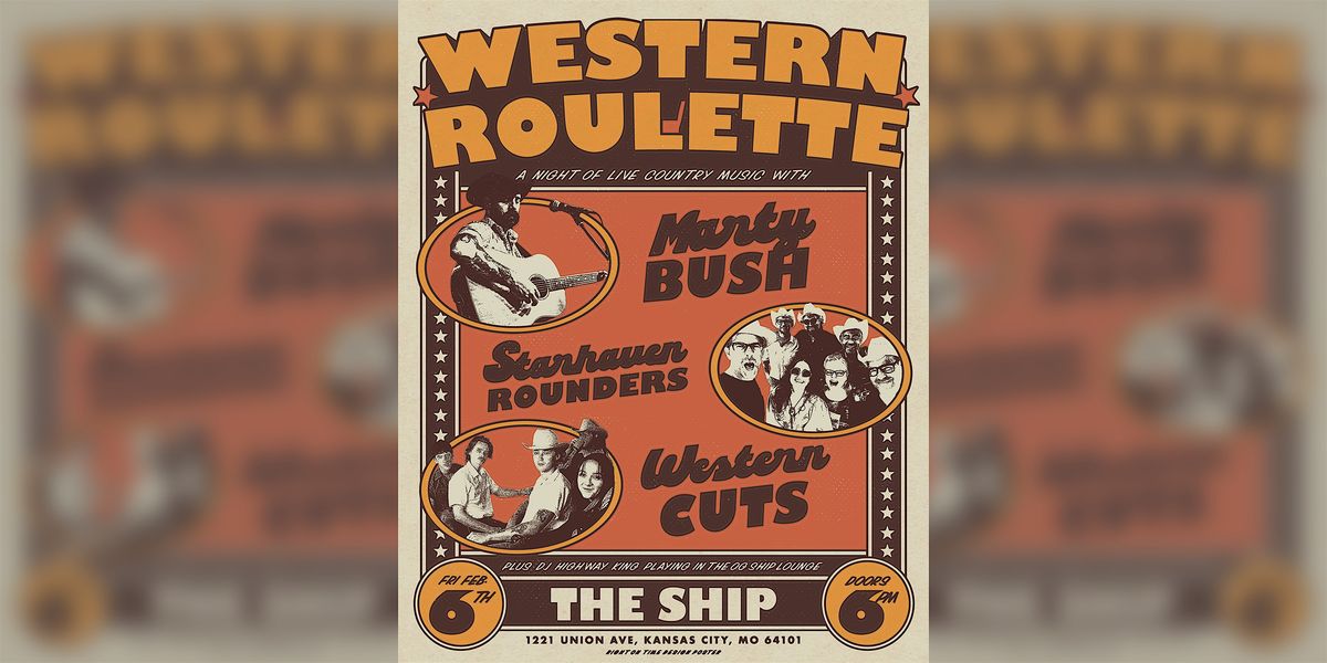 Since their appearance in Kansas City in 2011, the Starhaven Rounders have swiftly built a reputation for high energy shows full of ‘sass and defiance’ (Tim Finn, KC Star). Conceived by drummer Wade Williamson (the descendant of a long line of country western musicians) the band pulls material for their songbook from other eras, performing fan favorites like 'Pop a Top' and 'Six Days on the Road', in addition to lesser known songs from iconic country legends like Willie Nelson, George Jones, Johnny Cash, Waylon Jennings and more. The six piece band (with dozens of years of combined experience on stage) is a classic country western lovers dream, featuring pedal steel and dueling male/female vocalists. Even people who don’t consider themselves fans of the genre will get caught up in the Rounders upbeat, full throttle performances. Starhaven Rounders play the music of the heartland, celebrating family tradition, great songwriting and legendary musicians.