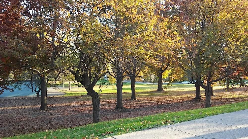 We will meet in front of the building (painted blue) and make our way around the park, stopping intermittently to discuss the trees along our path and how we can correctly identify them.