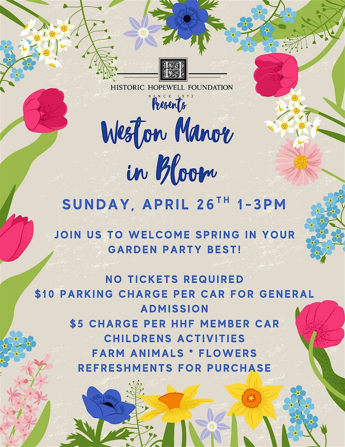 We look forward to welcoming you to our historic property! There will be fun for all ages to enjoy as we welcome warmer weather. Flowers and