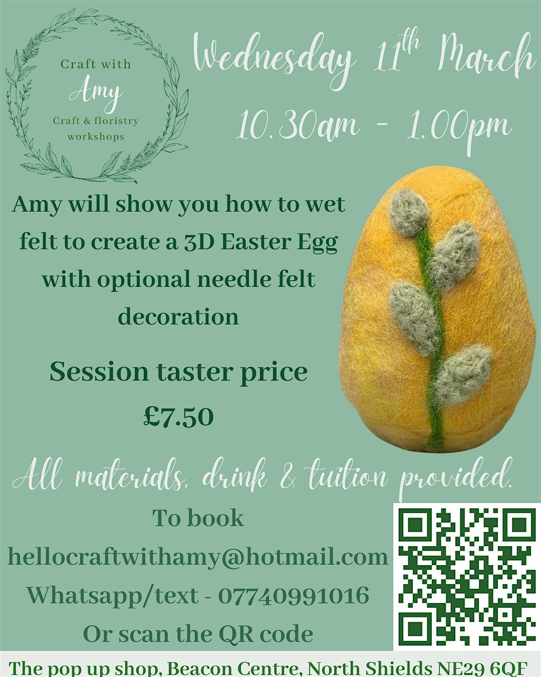 Amy will show you how to wet felt to create an Easter egg. Adult only workshop.About this Event