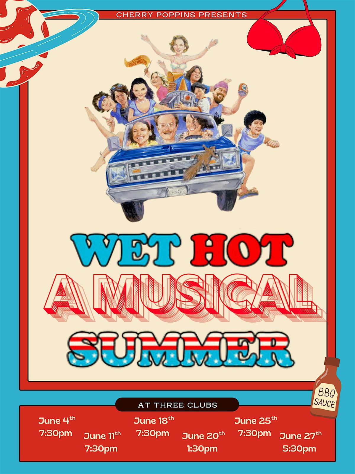 As friendships implode, romances ignite, and absolutely nothing goes according to plan, this parody leans all the way into the absurd—celebrating the bizarre, the nostalgic, and the 70’s playlist. Expect the signature anything-goes energy that defines a Cherry Poppins Productions show.
