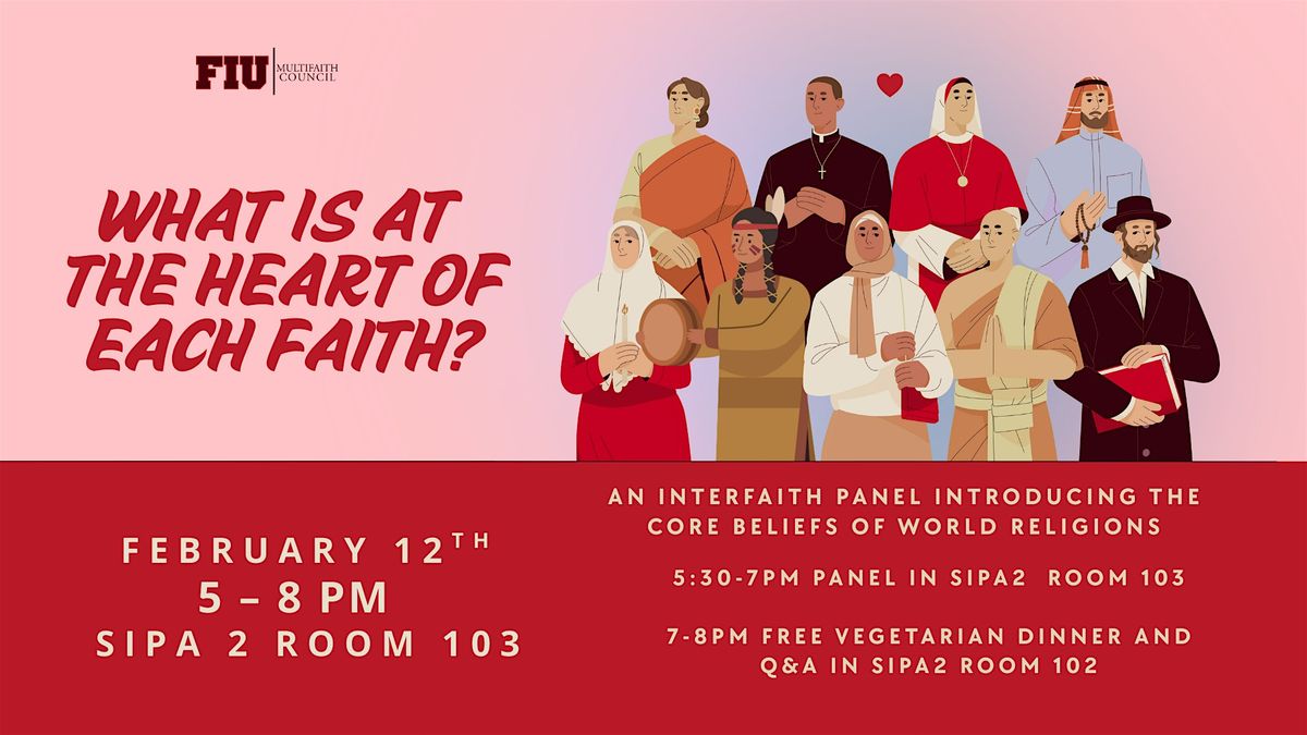The FIU Multifaith Council invites you to “What’s at the Heart of Each Faith?”—an introductory interfaith panel designed for students and community members who want to better understand religious traditions they may be unfamiliar with.