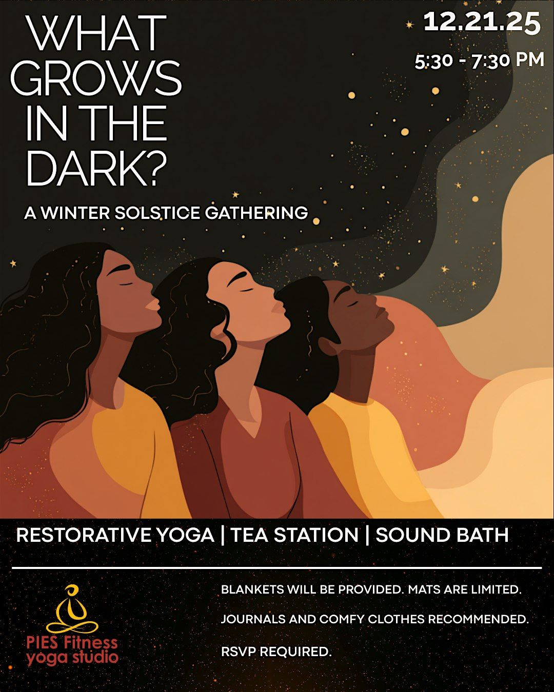 The Winter Solstice is right before the holiday stretch and is seen as a reawakening from darkness and circadian disruption. But before we emerge from the darkness, what lessons can it offer us in this season? What feels inaccessible to us in the dark? Alternatively, what may be available? This gathering is meant to answer those questions gently, with community, comfort, and practices that help us listen beneath the noise. Together, we’ll explore how darkness can be a place of restoration rather than fear; how it can grow clarity, creativity, and resilience if we let it. Think warmth against cold, curiosity over contraction, nourishment instead of depletion.