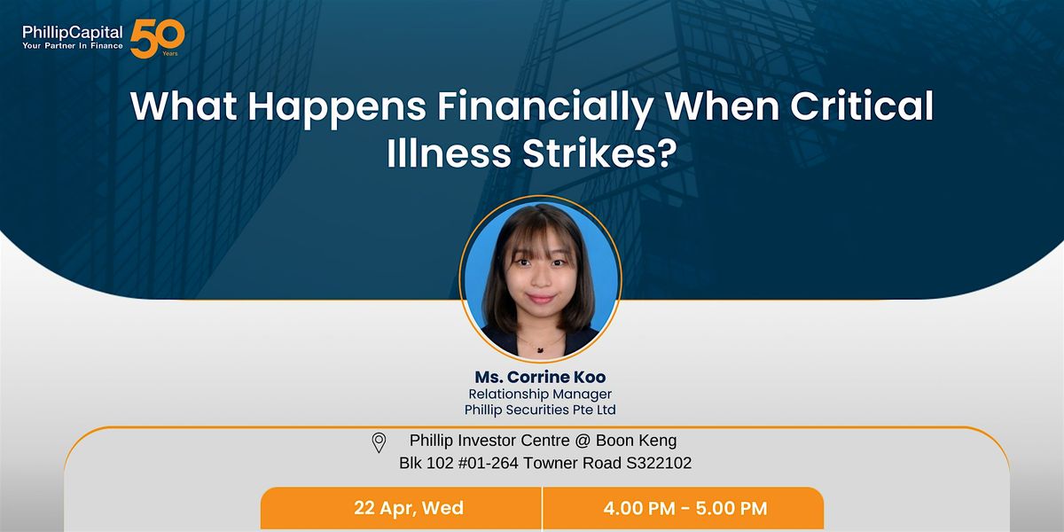 Join us at this seminar on 22 April, Wed at 4:00 PM, where Corrine Koo, Relationship Manager at Phillip Securities will break down what critical illness really means for your finances and how you can prepare in simple, practical ways.