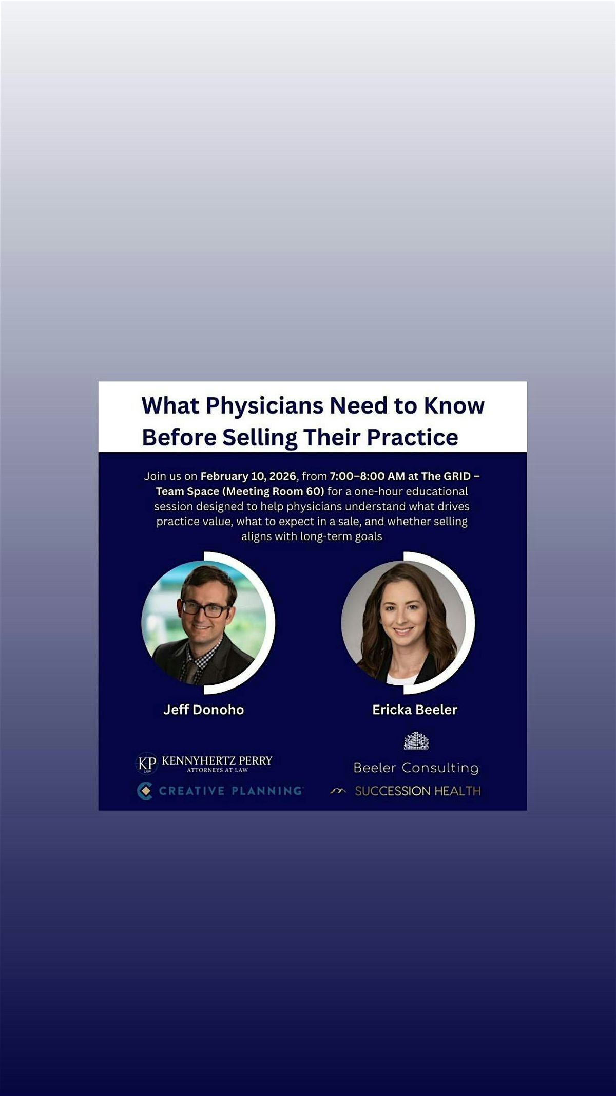 Physicians are being approached more than ever with offers to sell their practices — but not every deal is the right deal.Before you engage with hospitals, private equity, or management organizations, it’s critical to understand: • What actually drives practice value • How common deal structures work (and where the tradeoffs hide) • What life really looks like after the saleJoin us for a 60-minute educational session designed to give physicians a clear, practical framework for evaluating a potential practice sale — without pressure or sales pitches.