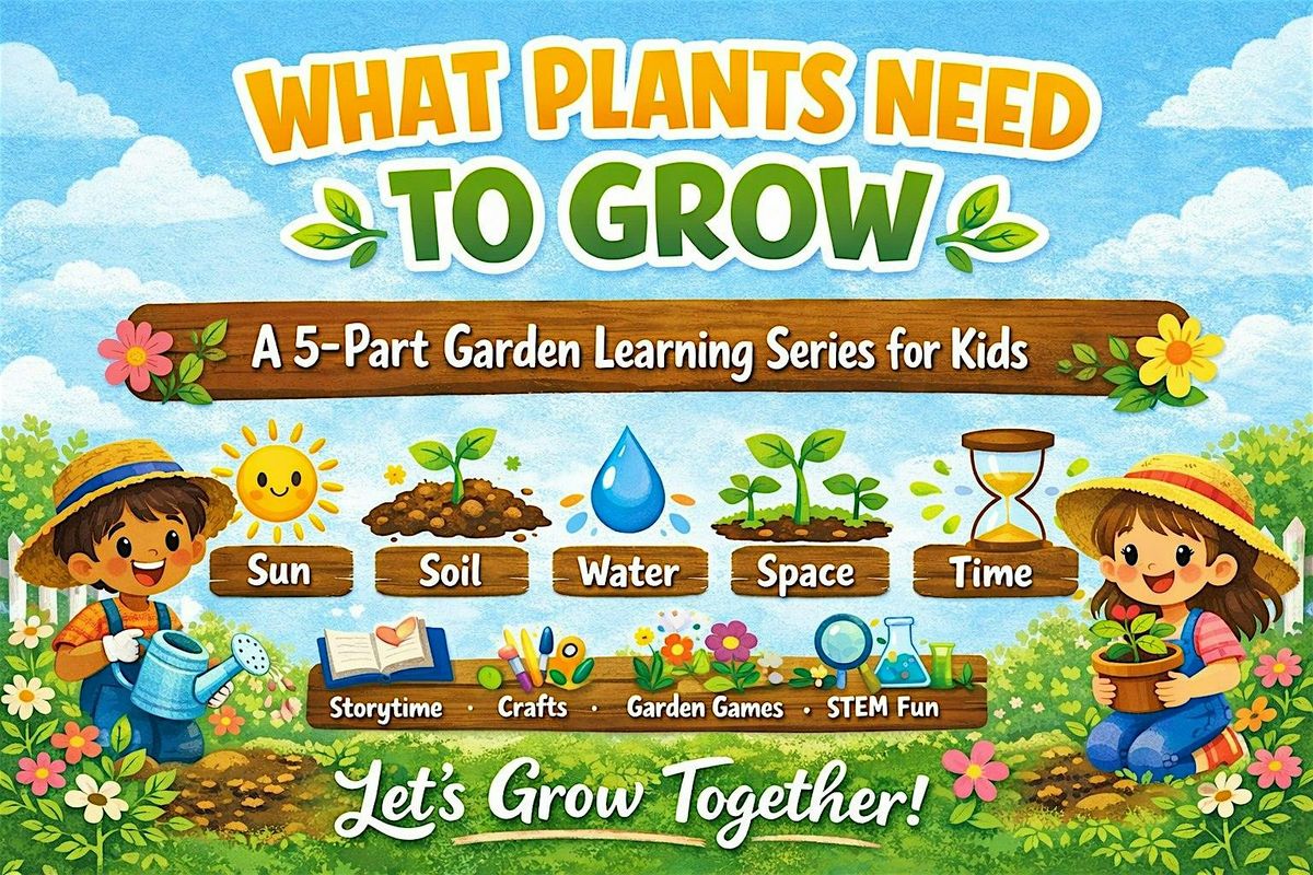 Join us for a fun and interactive 5-part series where kids explore the five essential things every plant needs to grow: Sun, Soil, Water, Space, and Time. Each class is full of storytime, crafts, games, hands-on experiments, and yummy snacks — perfect for curious young gardeners!