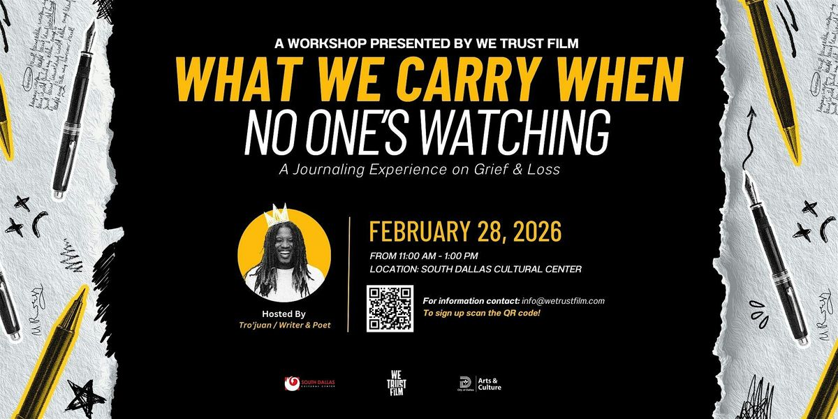 What We Carry When No One’s Watching is a guided journaling workshop hosted by We Trust Film Collective and facilitated with local poet Tro’juan in honor of Black History Month.