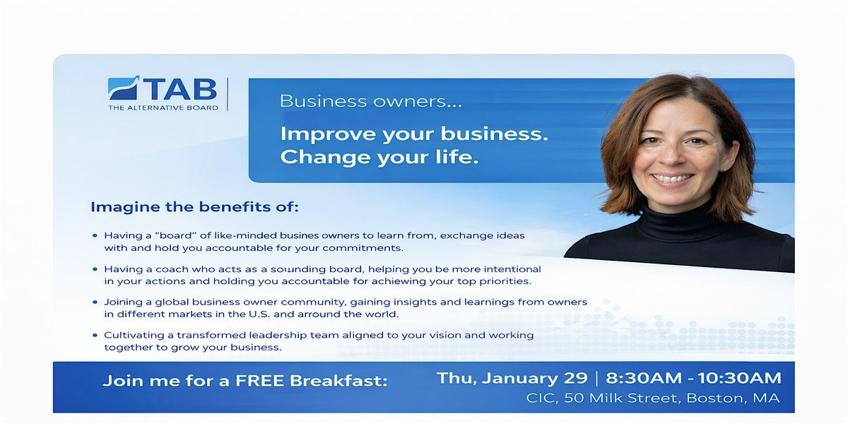 Join us in person for TAB's free roundtable where we dive deep into the challenges stalling your business growth. Let's chat, share ideas, and discover practical solutions together. Whether you're stuck on marketing, sales, or operations, this is the perfect spot to find your next breakthrough. Don't miss out on this casual and insightful meetup—your business deserves it!