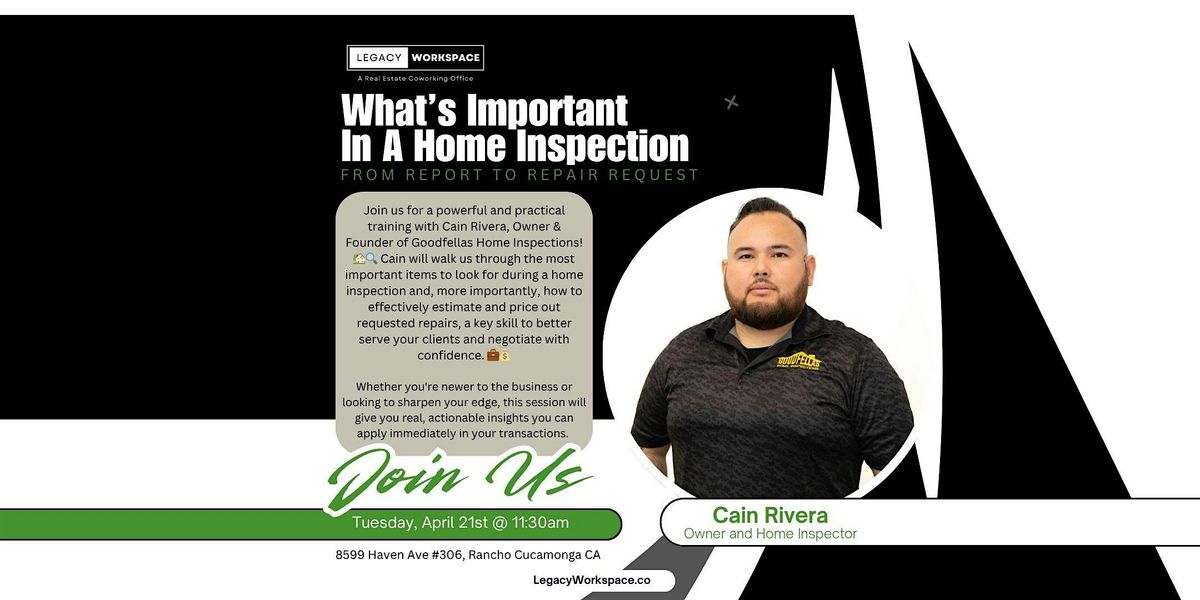 Join us for a powerful and practical training with Cain Rivera, Owner & Founder of Goodfellas Home Inspections! π‘π Cain will walk us through the most important items to look for during a home inspection and, more importantly, how to effectively estimate and price out requested repairsβa key skill to better serve your clients and negotiate with confidence. πΌπ°