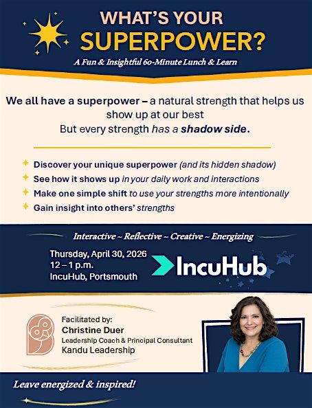 We all have a superpower – a natural strength that helps usshow up at our best. Come discover yours! FREE LUNCH provided