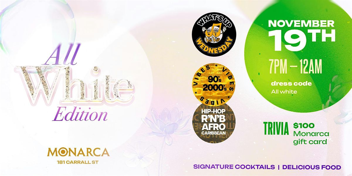 This November, step into a chic, tropical-elegant night as we light up Monarca (Gastown) with a clean, luminous ALL WHITE vibe. ✨ Smooth 90s and 00s R&B, timeless Hip-Hop, and Afro-Caribbean rhythms plus today’s feel-good hits keep the floor moving all evening.