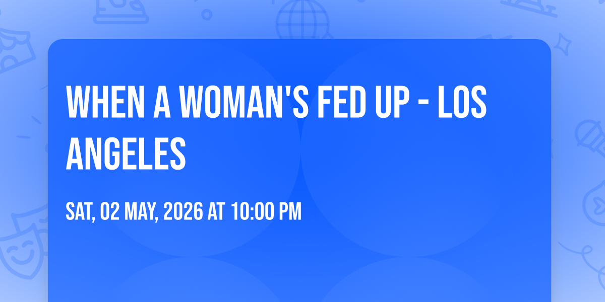 📍 Location: 34.0426, -118.256🌟 Be part of history at When a Woman's Fed Up - Los Angeles, an extraordinary gathering that will captivate your imagination! 🏛️ The prestigious Orpheum Theatre - Los Angeles in Los Angeles, CA sets the stage for an unforgettable experience on May 3rd, 2026 at 02:30 AM. ✨ They are bringing together the finest elements of entertainment and innovation to create moments that will take your breath away. From the moment you arrive, you'll be immersed in an atmosphere of wonder and excitement. 🎯 This carefully planned event ensures every guest experiences something truly special. 🎊 Early booking is recommended for this must-attend event of the season!