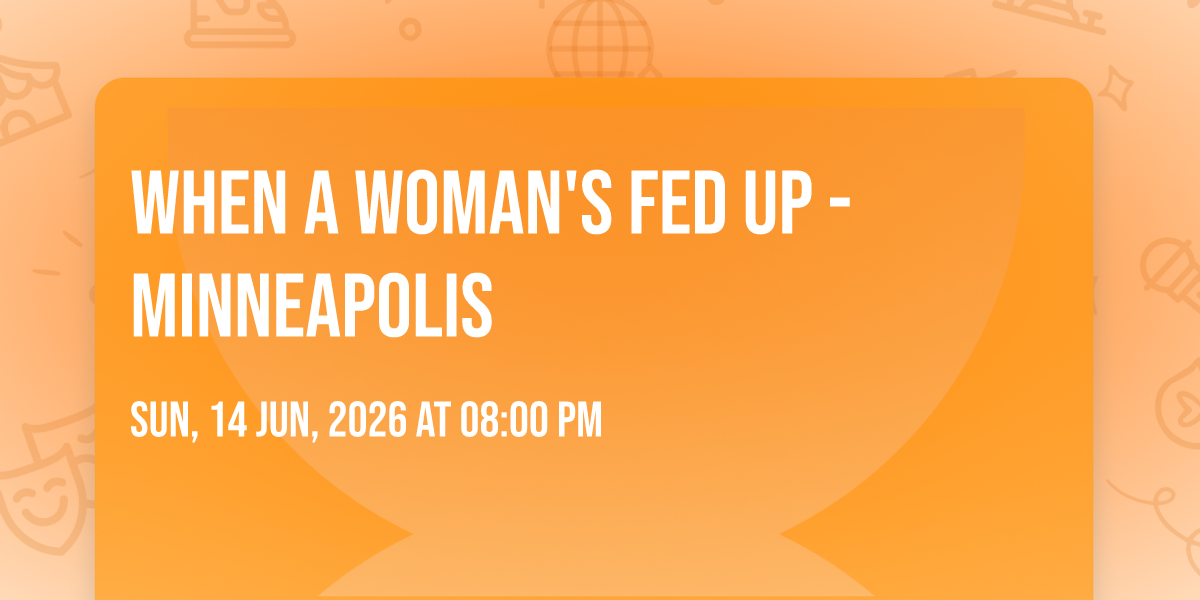 π Location: 44.9766, -93.2758π Step into a world of wonder at When a Woman's Fed Up - Minneapolis, where extraordinary moments await! ποΈ Located at State Theatre - Minneapolis in dynamic Minneapolis, MN, this event will become the talk of the town. π Join us on June 14th, 2026 at 08:00 PM for a celebration that defies the ordinary. β¨ This curated experience brings together the best of entertainment, culture, and community spirit. Every detail has been thoughtfully planned to ensure an unforgettable experience for all our guests. π― Take advantage of this opportunity to be part of something special. π Early registration is recommended as space is limited!