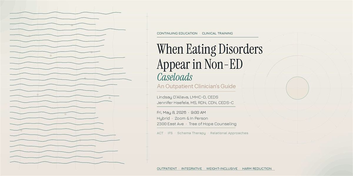 Participants will learn how to apply familiar therapeutic frameworks (including ACT, IFS, Schema Therapy, and relational approaches) to eating disorder presentations, helping clinicians leverage skills they already possess to address root functions of disordered eating. The presentation will clarify when outpatient therapy is appropriate, when and how to discuss higher levels of care, and how to collaborate effectively with dietitians using harm-reduction and weight-inclusive principles. Clinicians will leave with increased confidence in identifying eating disorders, initiating appropriate conversations, knowing when to refer out, and supporting clients ethically and effectively within their scope of practice.