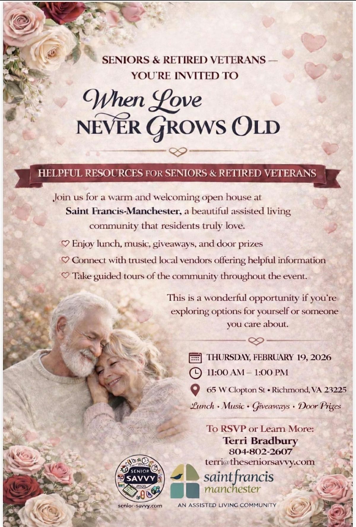 Seniors & retired veterans are invited to a fun event! Free catered lunch, live music, great resources, giveaways & door prizes, plus tours.