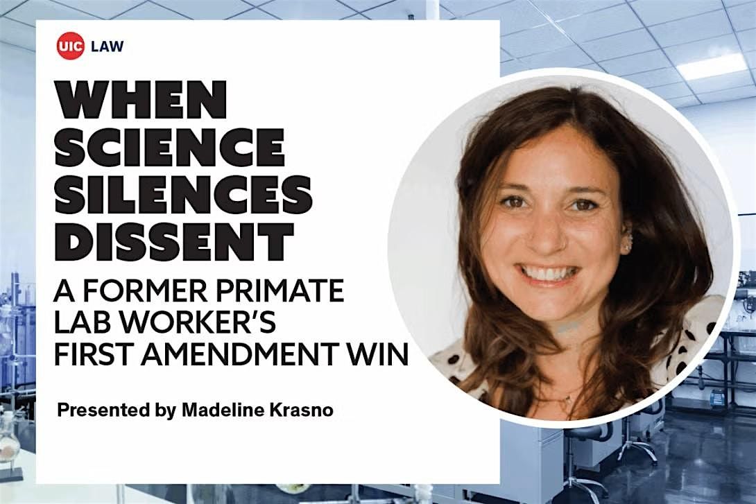 Please join the UIC Animal Law Program for a talk by Madeline Krasno, a former primate laboratory worker whose experience in animal research led her to become a leading advocate for compassion, transparency, and accountability in science. Her successful free speech lawsuits against the University of Wisconsin–Madison and the National Institutes of Health—featured in The Washington Post—sparked national conversation about the hidden human and animal costs of experimentation.