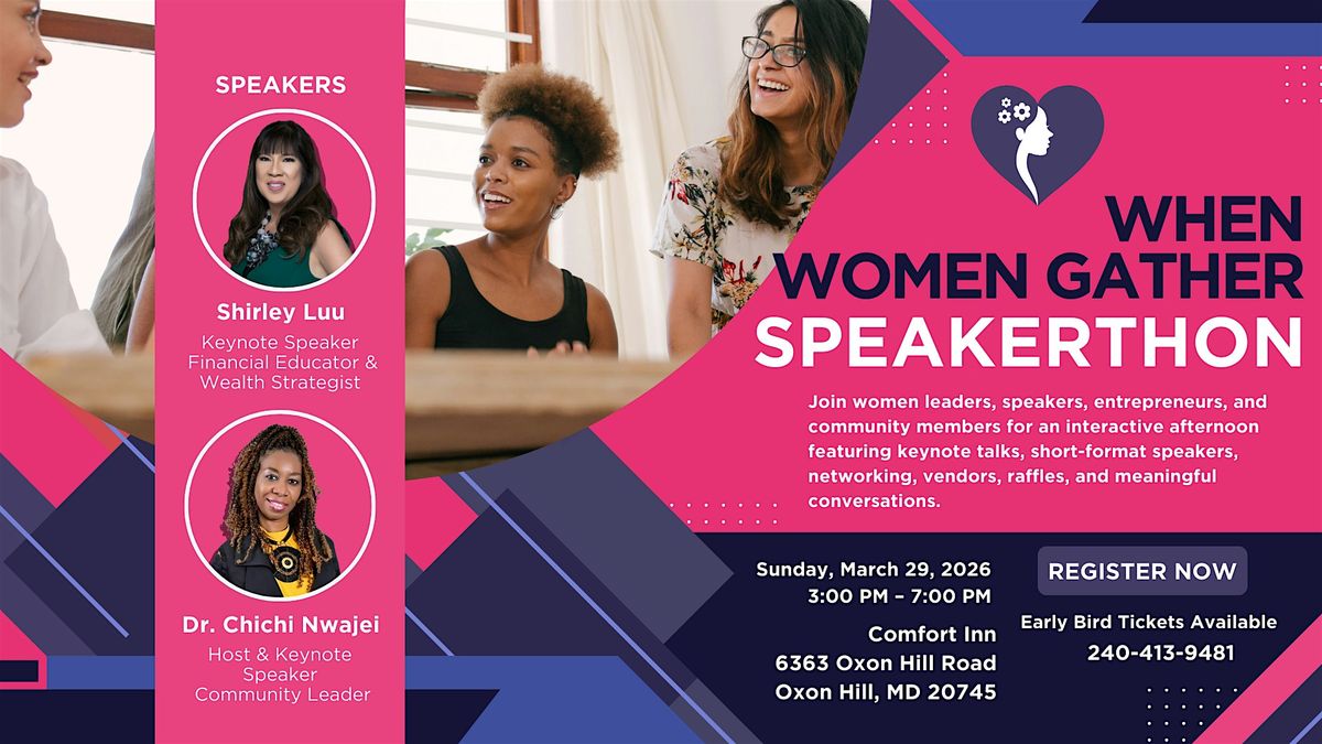 When Women Gather: Speakerthon is a curated, in-person experience created in honor of International Women’s Month, bringing together women leaders, entrepreneurs, speakers, vendors, and community members for an afternoon of empowerment, collaboration, and connection.