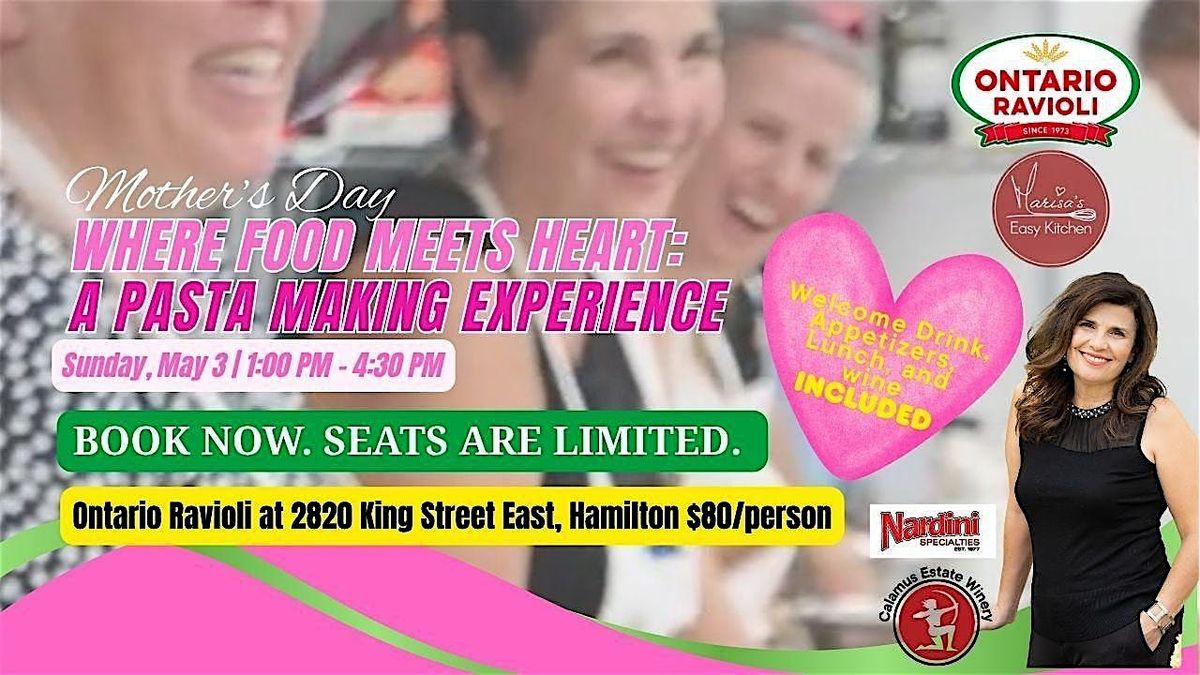 Enjoy a demonstration of how to make your own sauce, followed by a relaxed, light lunch featuring two of Ontario Ravioli’s delicious pasta, thoughtfully paired with a sampling of two Calamus wines. And a special dessert awaits!