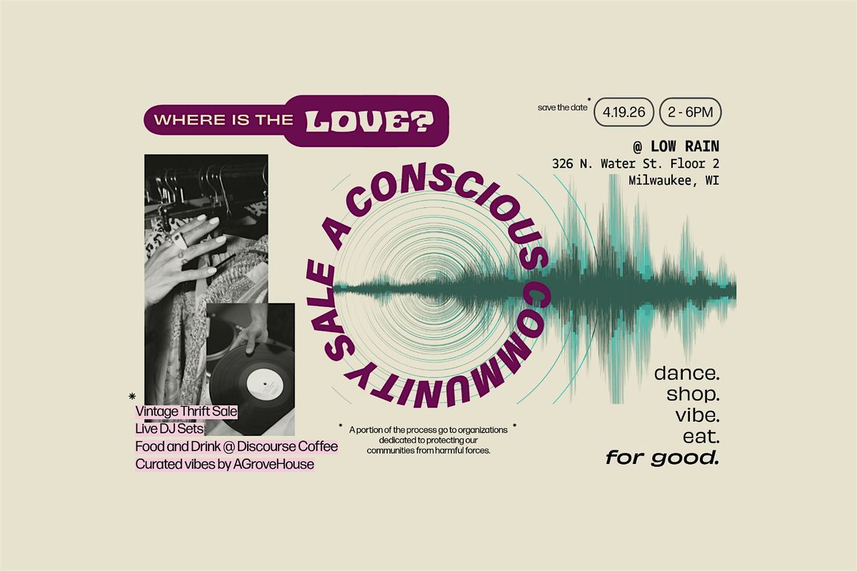 Join us April 19th from 2–6 PM at LOW RAIN Studio (326 N Water St, Floor 2, Milwaukee, WI) for a conscious community sale featuring vintage clothing, local music, and more. We'll have food and drink around the corner in collaboration with @discourse.coffee.