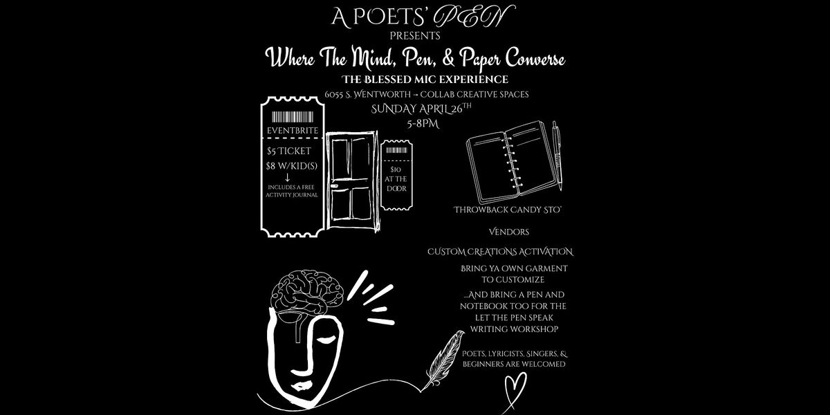 This is a hybrid event where there will be an open mic and a writing workshop. To share the art for all, this is a kid friendly event. There will be an area for the kids to be kids AND they will be monitored by a trusted adult. BUT, there will be guided activites for them to learn about poety/writing as well. If you buy a ticket that indicates that a child is an attendance, they will recieve a free activity journal. Parents will be able to meet the chaperone, and will be in close vicinity of their children.