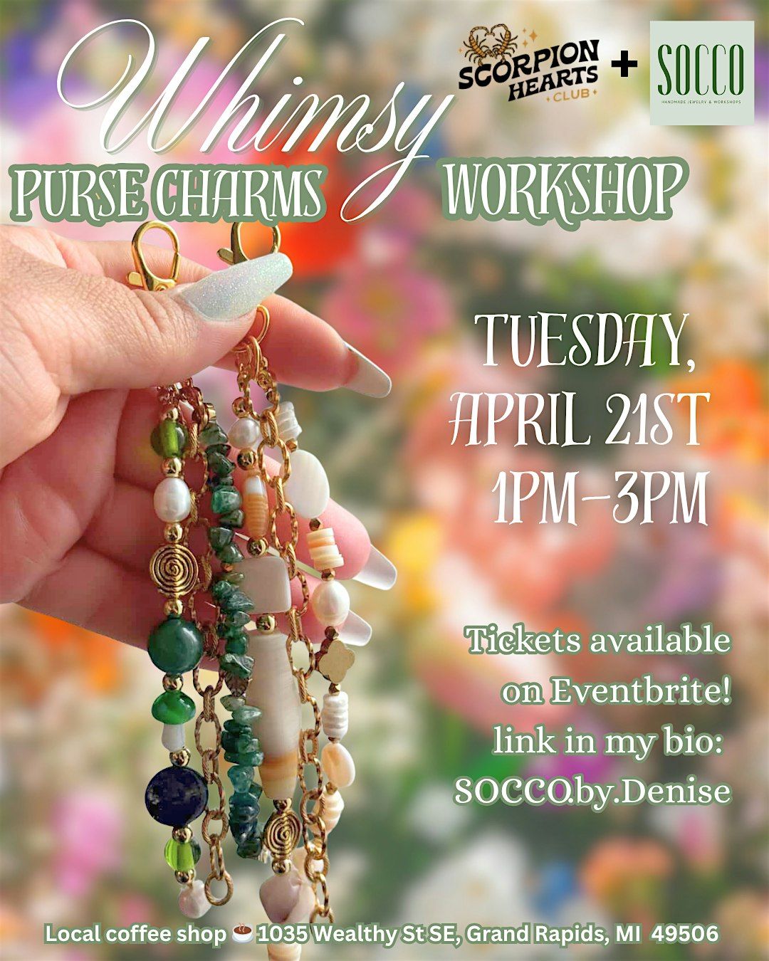Join us on April 21, 2026 at 1:00 PM (Eastern Daylight Time) for a fun and creative afternoon at local coffee shop Scorpion Hearts Club. We'll be crafting adorable purse charms together—perfect for adding a little whimsy to your style or gifting to a friend. No experience needed, just bring your creativity and good vibes. Can't wait to see you there!