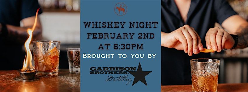 Welcome to Whiskey Night, Garrison Brothers Edition! Get ready for a night filled with the finest whiskey paired with dishes created by Chef Michael! It is always a great time...come learn a bit, expand your palet, and have a great time. Join us on February 2, 2026 at 6:30 PM for an unforgettable experience.