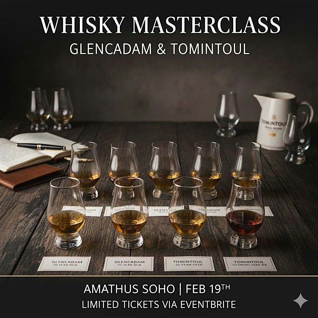 Join us for an exclusive evening at Amathus Soho as we explore the exceptional craftsmanship of two iconic distilleries: the "Elegant Highland" Glencadam and Speyside’s "Gentle Dram," Tomintoul.