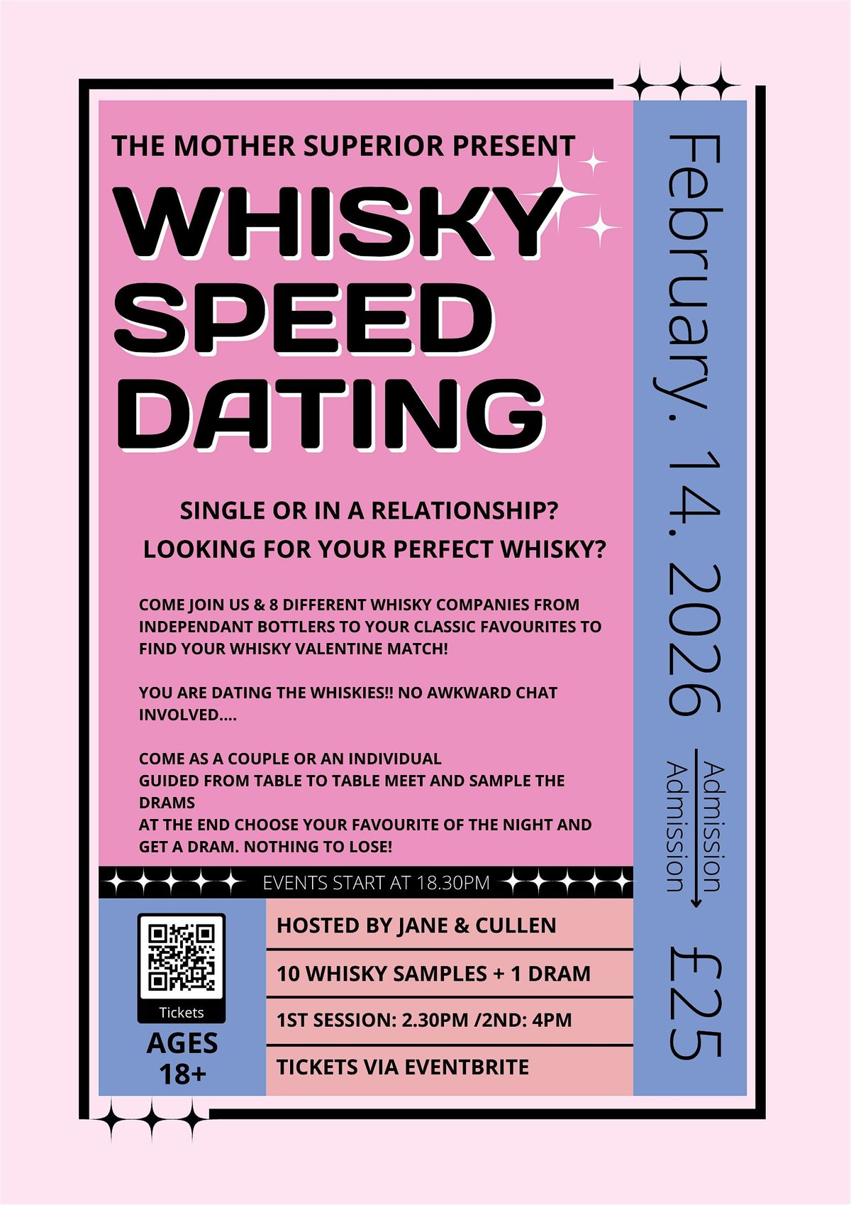 You are dating the whiskies!! This is a whisky tasting with a speed dating twist! No awkward chat involved....unless you bring it hahaha