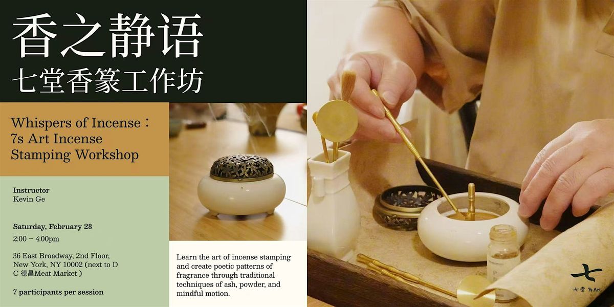 In this hands-on, experiential workshop, you will delve into the elegant art of incense stamping, known as xiang zhuan, which is a vital part of traditional Chinese incense culture. Incense stamping is an ancient practice that uses fine incense powder to create seal-like patterns, which then slowly release a calming and focused fragrance as they burn.Under the guidance of instructor Kevin Ge, you will learn traditional tools and techniques using ash and powder to craft beautiful incense seal patterns yourself. This is a perfect opportunity to slow down, find peace, and reconnect with yourself through the art of fragrance.