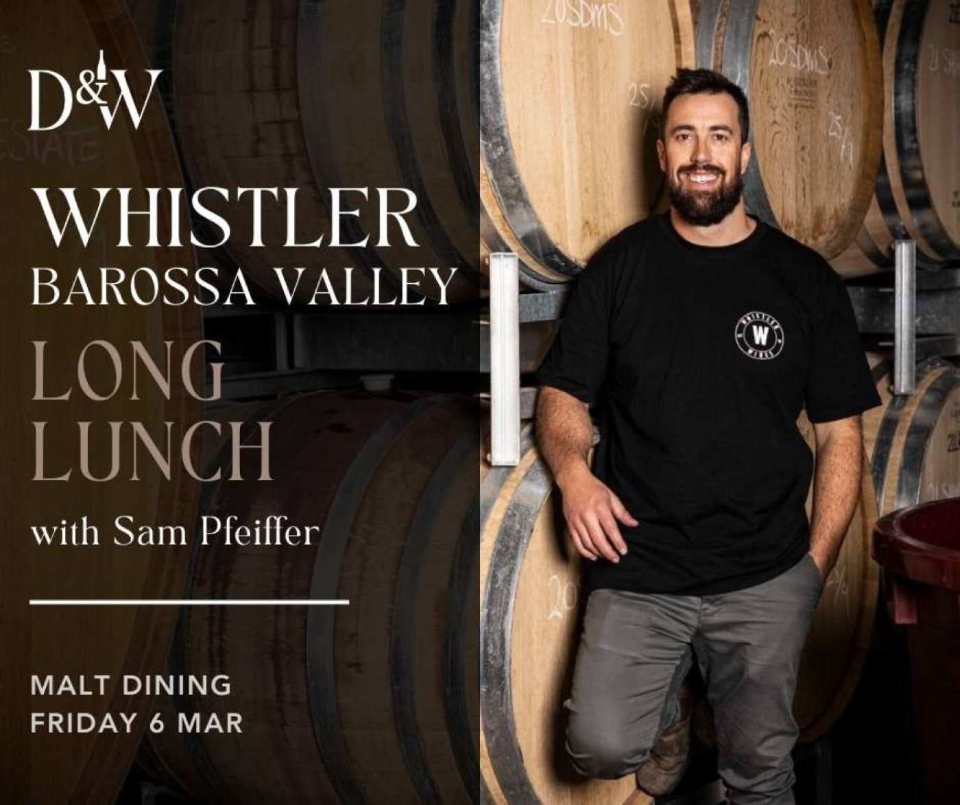 Our good mate Sam Pfeiffer is back in town in March and we can never pass up the opportunity to sit down with him over a long lunch for a bit of a yarn! Sam took over Whistler, the family winery, a few years back and has really made his mark on the Barossa wine scene in a very short time. We’ll kick things off with the ‘Dry as a Bone’ Rose (the perfect wine for our QLD climate!) before focusing on their outstanding single vineyard Estate reds… and Sam has also promised to sneak up a few bottles of his 2021 Reserve Shiraz from his museum collection – never before seen in QLD. Six gorgeous wines, a delicious three course meal from the team at Malt and some quality chat to boot – the recipe for a perfect Long Lunch… don’t miss it!