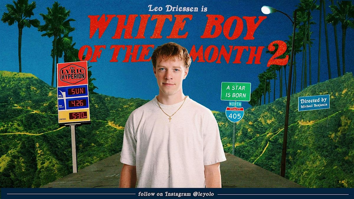 The show is WHITE BOY OF THE MONTH, it's "A Star is Born" for a twenty-something, where TikTok is the means to fame (playing gay for Luca Guadagnino). A normal guy who likes Fortnite and Guitar Hero blows up online from a video, and he experiences everything that comes with fame in 2026: photoshoots with Charli XCX and Rachel Sennott, his first hot-shot Hollywood Agent, and an Academy Award speech that calls for an end to gun violence and teases his bisexuality. LA's finest comics join Leo Driessen to pull off a career-high night at the Lyric Hyperion.
