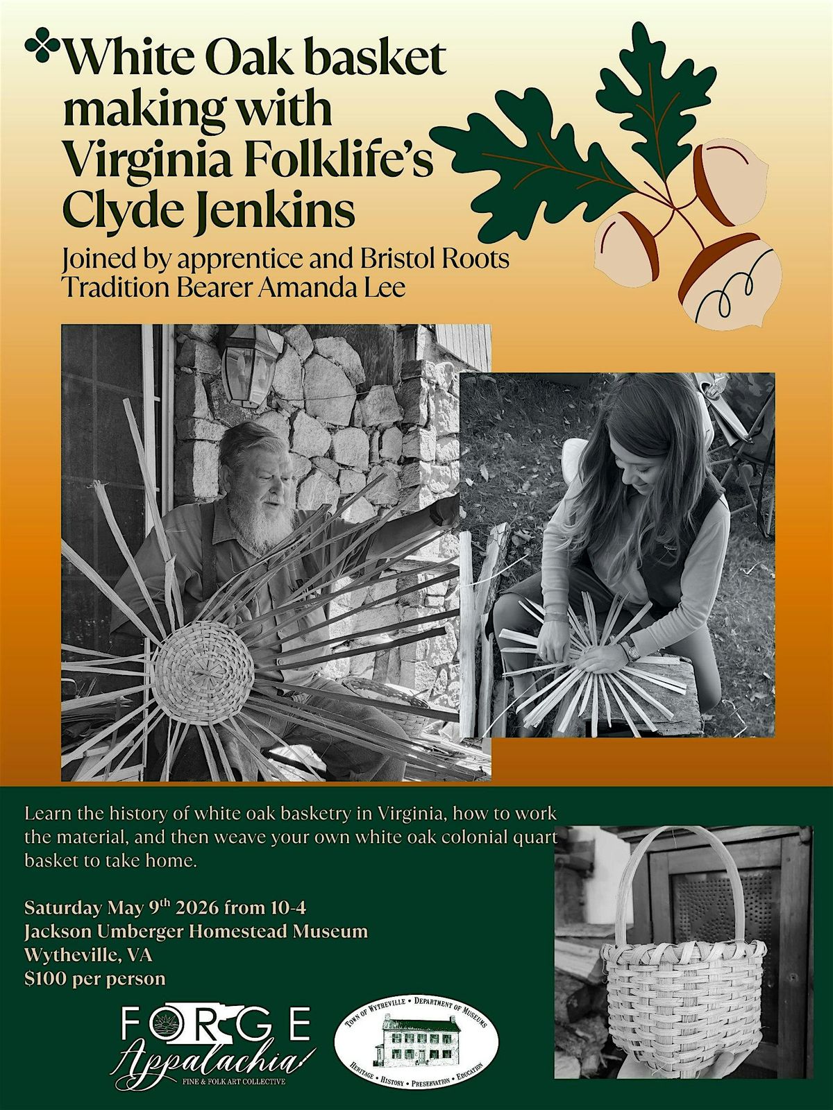 Steeped in history, white oak basket making is an important folk craft and a Virginia tradition. Join Page County basket artisan and Virginia Folklife mentor Clyde Jenkins for a basket making session using historic techniques that have been handed down through the generations.