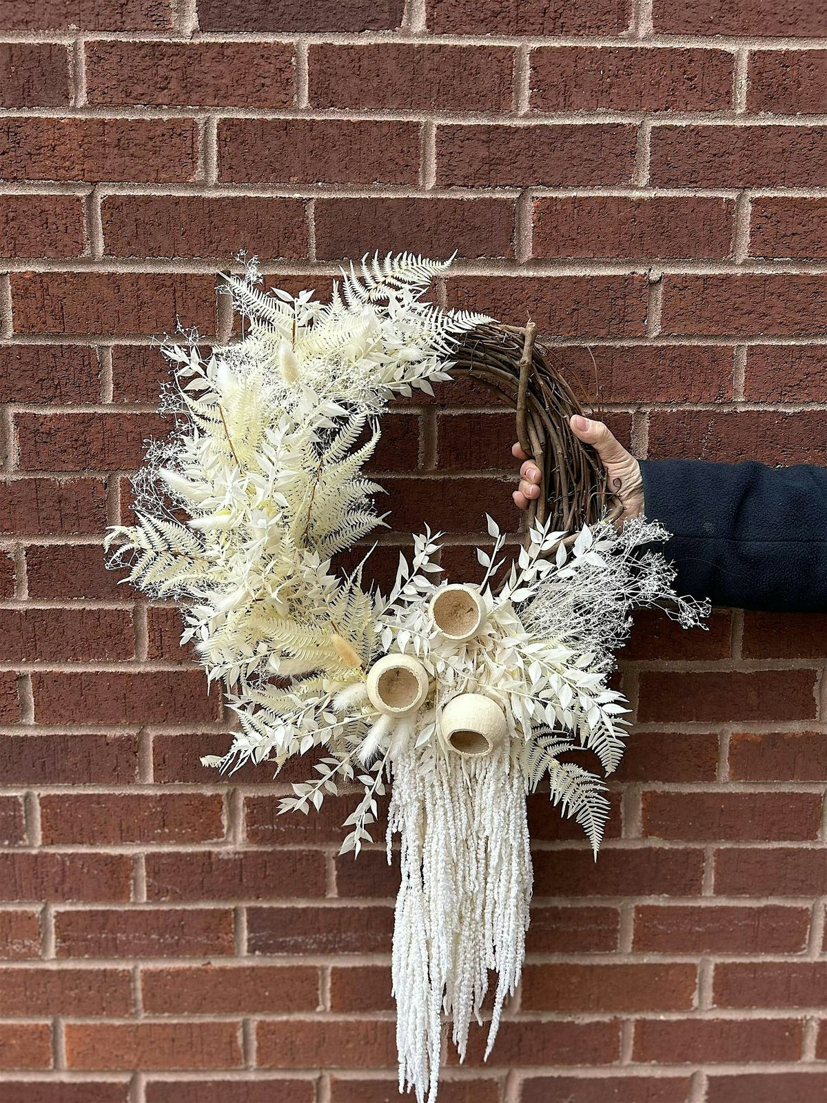 Come and learn the basics of flower care and design and join one of our designers in creating a modern bouquet featuring a few of our dried favorites in classic winter white perfect to last the rest of the season!