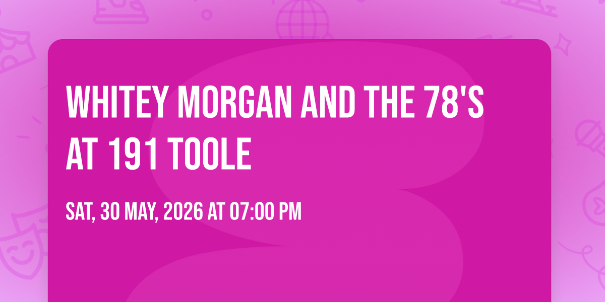 ✨ Embark on an extraordinary journey at Whitey Morgan and the 78's at 191 Toole, where every moment promises to be unforgettable! 🌟 Imagine of transforming 191 Toole in the heart of Tucson, AZ into a realm of endless possibilities. 📅 Join us on May 30th, 2026 at 07:00 PM for an experience that will challenge your imagination and exceed your expectations. 🎯 This carefully curated event combines the finest elements of entertainment, innovation, and community spirit. Whether you're an adventure seeker, culture enthusiast, or someone looking for unique experiences, this event offers something special for everyone. 🎊 Don't miss this chance to be part of something extraordinary!