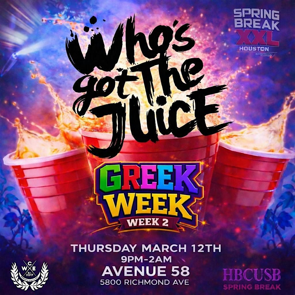 Spring Break in Houston calls for a different level of energy. Who Got The Juice? brings together Greek life, tastemakers, and movers for a night centered around presence, style, and real motion.
