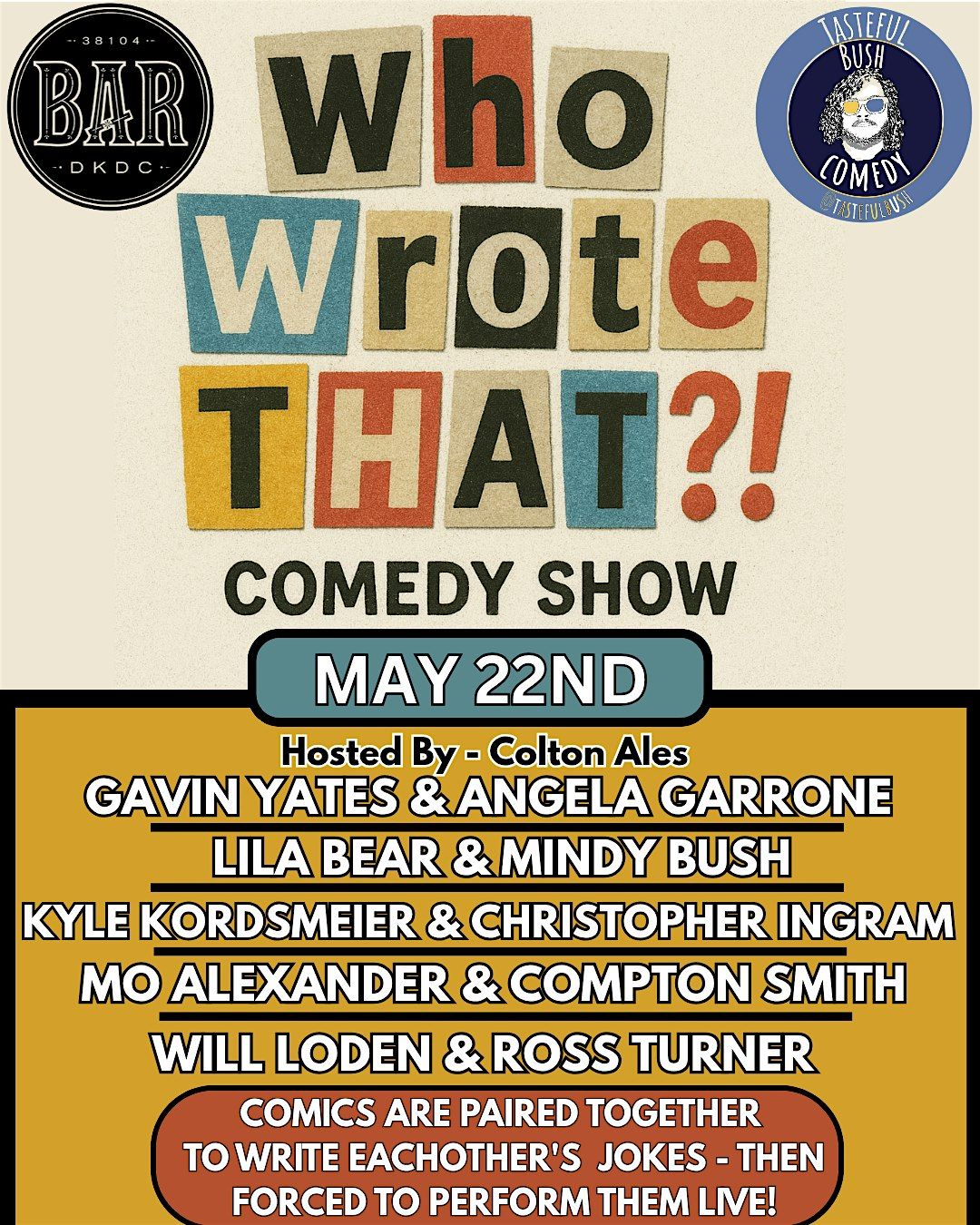 Comedians are paired together to write EACH OTHER'S jokes then fored to perform them live! (In the style of 'weekend update')About this Event