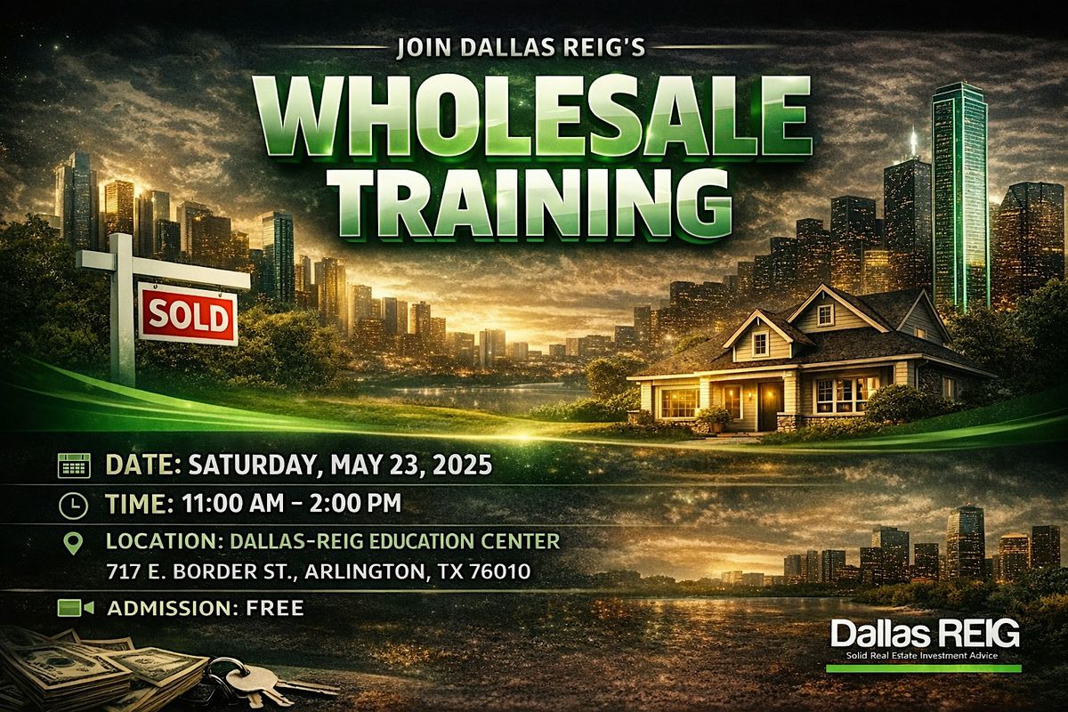Come learn, connect, and take the next step toward closing more deals with Dallas REIG Wholesale Training.