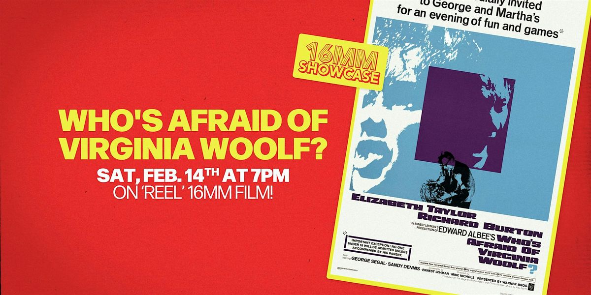 Incredible performances, beautiful photography, and joyfully acidic dialog combine to turn WHO'S AFRAID OF VIRGINIA WOOLF into a 60s new wave masterpiece! Come celebrate Valentine's Day with us and this ultra rare, 'REEL' 16MM FILM print!