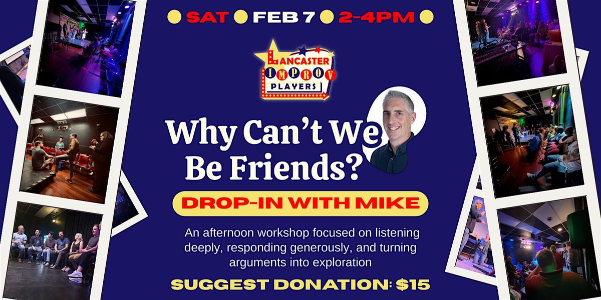 About the teacher: Mike Andrews has been a proud performer with the Lancaster Improv Players since 2019. In addition to being a coach and member of current LIP house teams, Mike is also a member of the Lancaster Touring Company. Outside of Lancaster, Mike has completed the SAK Comedy Lab class curriculum at the Orlando, FL theatre where Wayne Brady got his start and has performed with Comedy Sportz in Philadelphia. As a founding member of multiple independent improv teams, Mike enjoys sharing the joy of improv comedy with new audiences and students of the craft.