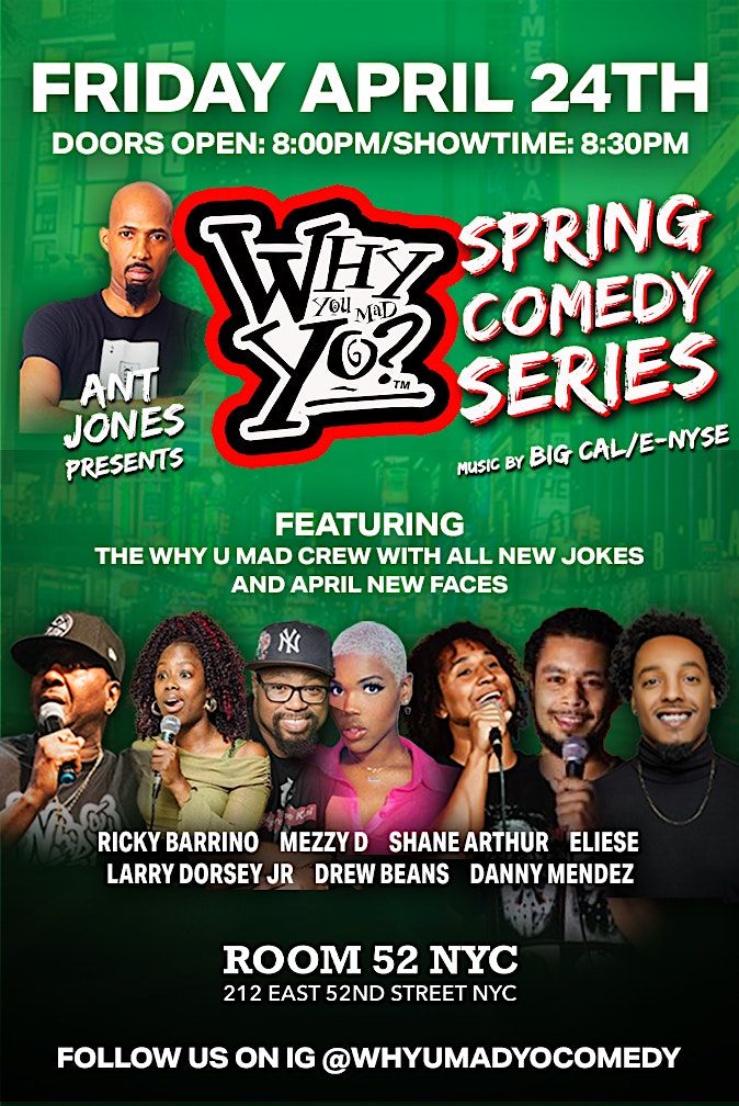 Stand-up comedy and improv. Filmed on location in NYC. Check out clips from the show, it is the place to be (Instagram @whyumadyocomedy).