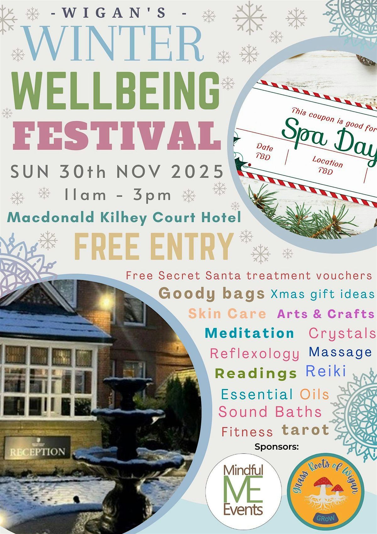 Welcome to Wigan's Winter Wellbeing Festival! Join us at Macdonald Kilhey Court for a day filled with wellness activities and relaxation. This event is your chance to unwind, recharge, and focus on your health during the winter season. From sound healing to meditation workshops and with two floors of local wellbeing businesses, spiritual readers and holistic therapists, there's something for everyone looking to prioritise their wellbeing. Come and enjoy a day of self-care and rejuvenation at our festival!