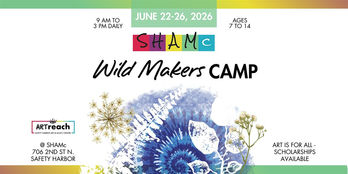 *SHAMc Members get $20 off per week of camp, as well as access to registration 24 hours before the public. The discount code is included in the Members-only email with priority registration. Learn more about memberships at https://www.safetyharborartandmusiccenter.com/membership